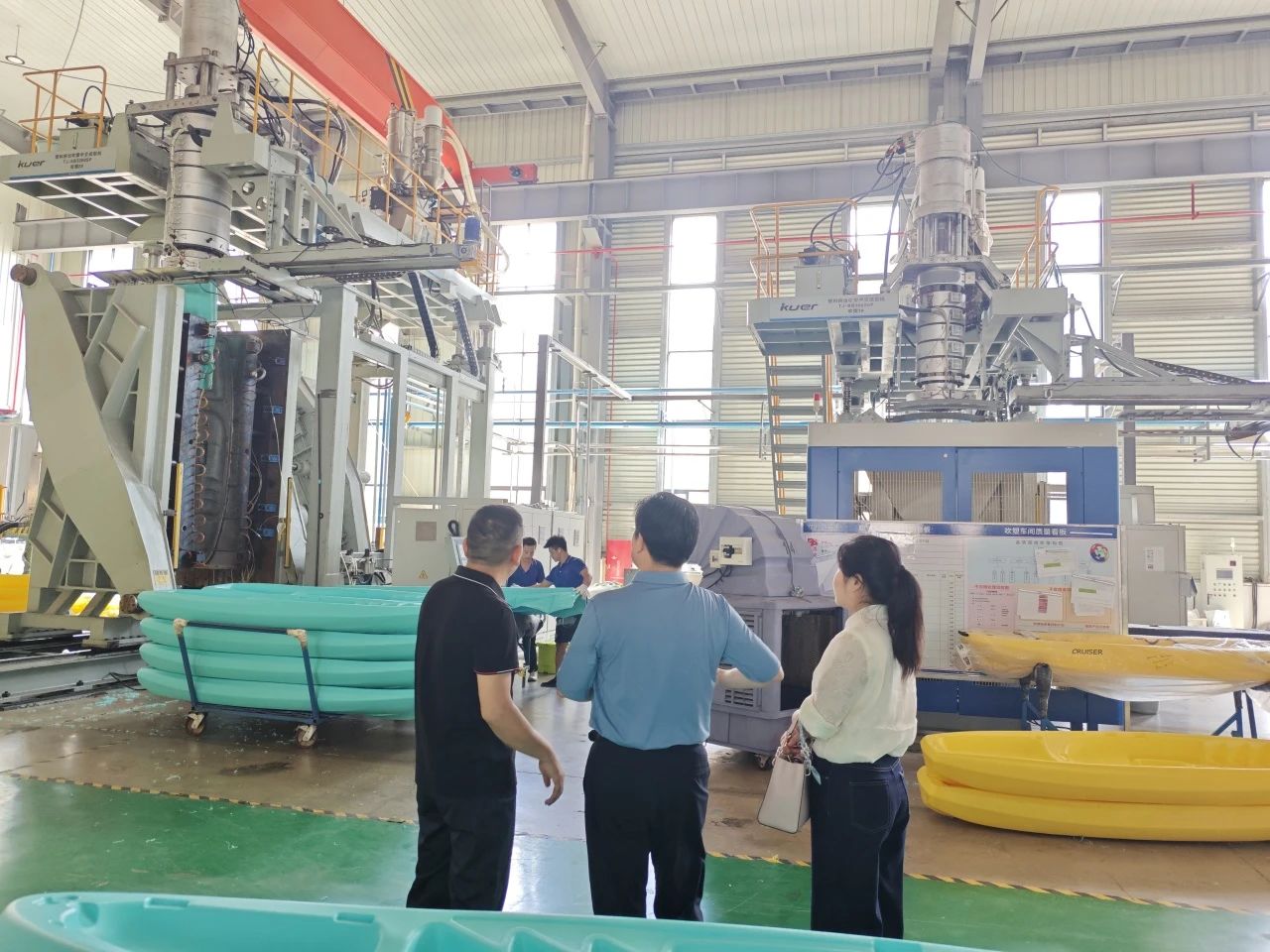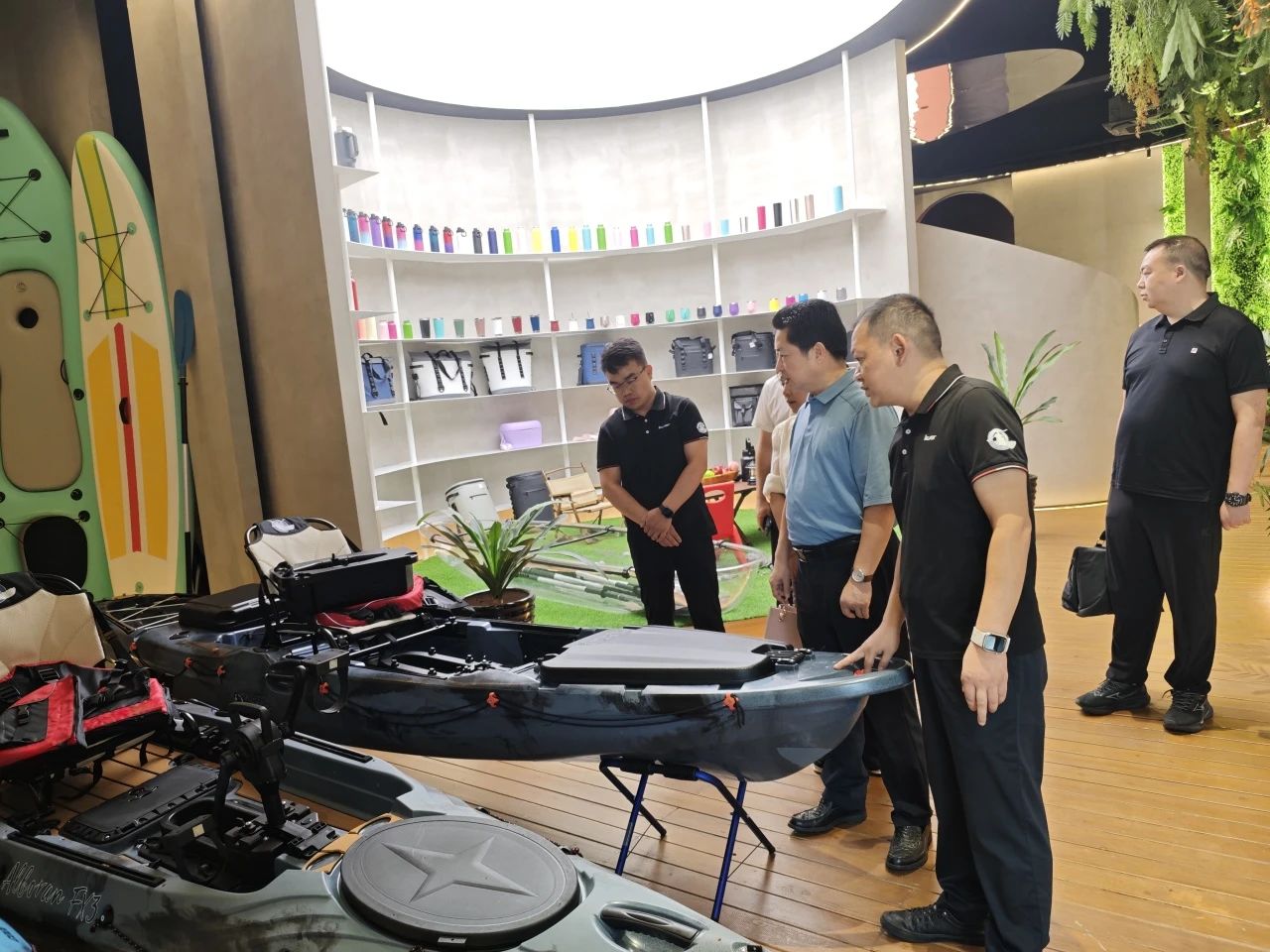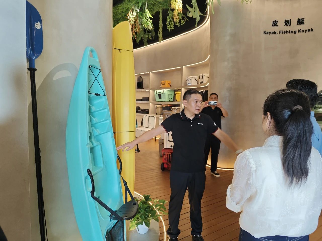 在酷尔集团的现代化展厅,教育局领导一行详细了解酷尔的核心产品——皮划艇、保温箱、工具箱等,同时也体验到集团“硬核”产品的创新魅力。