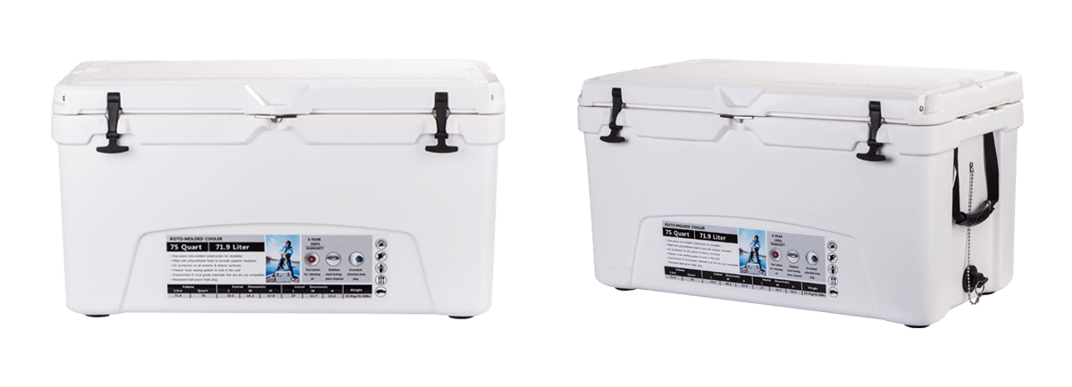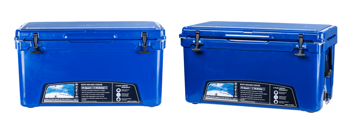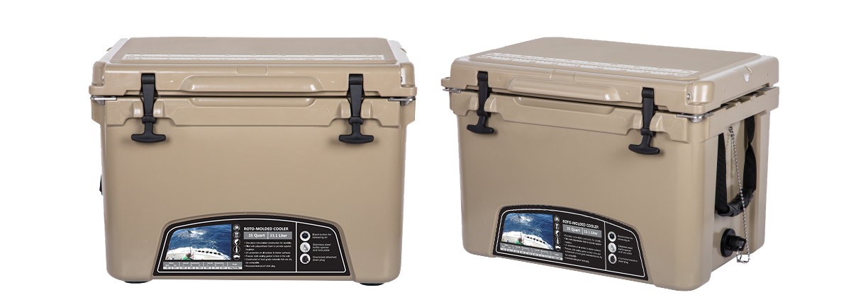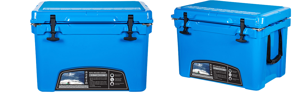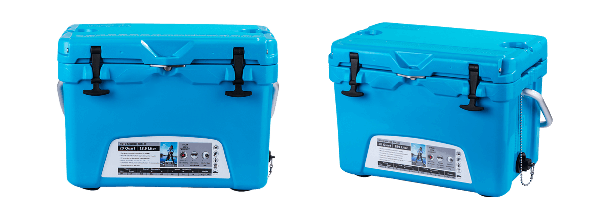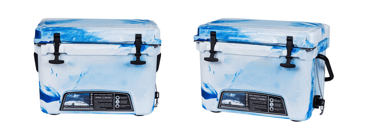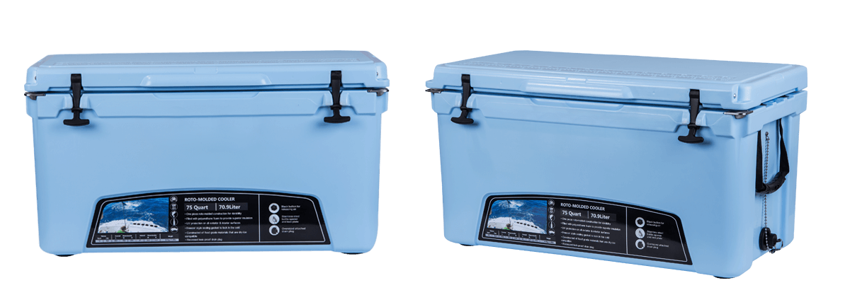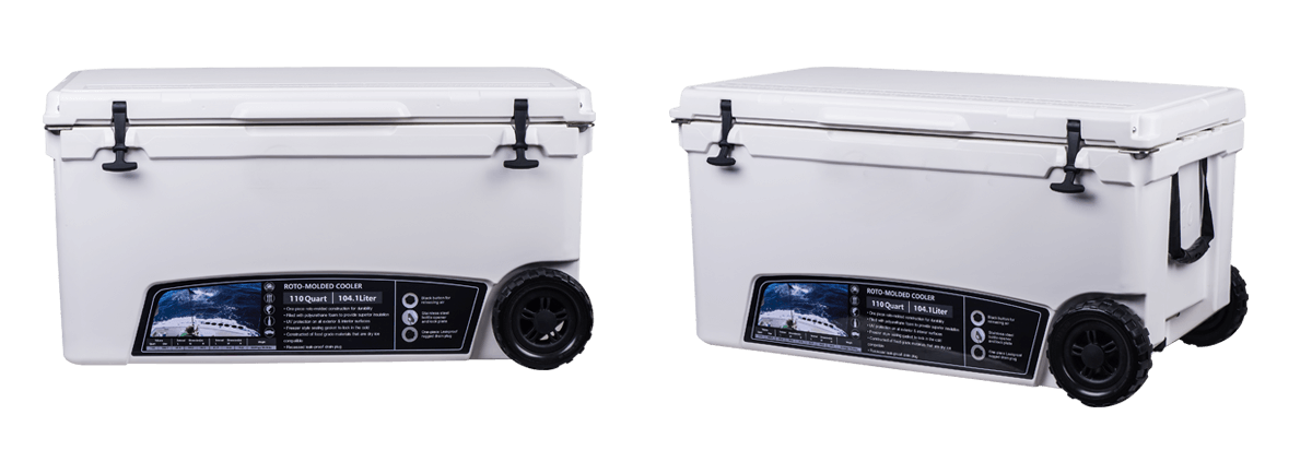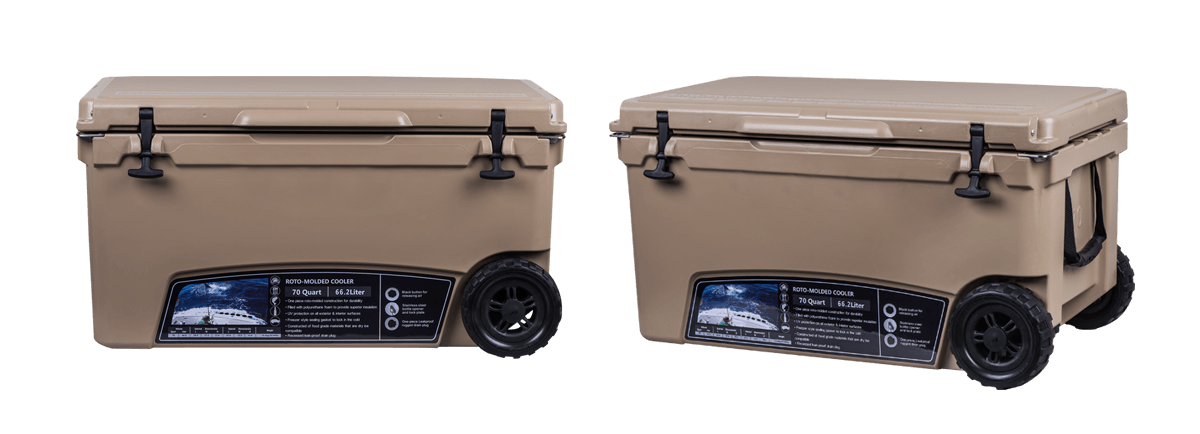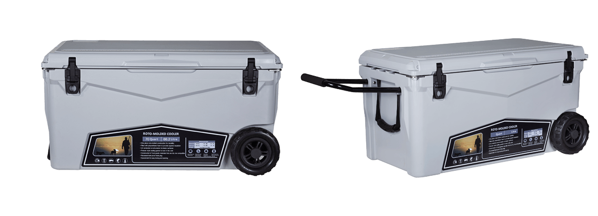 This type includes 10/20/45/60/75qt, 70/110qt with wheels. It features one more bottle opener than the 2015 model. Cancel the cup holder position on the top of the box cover, and the customized logo will be moved to the middle of the box cover, making the whole more rounded.