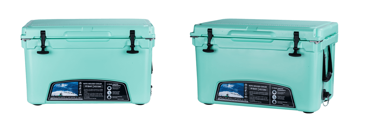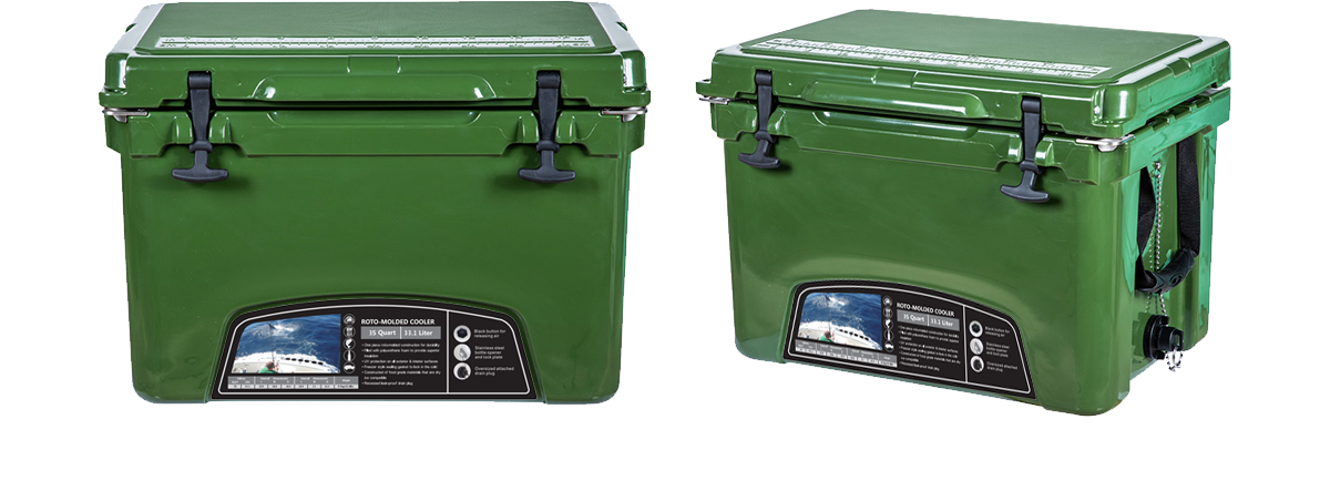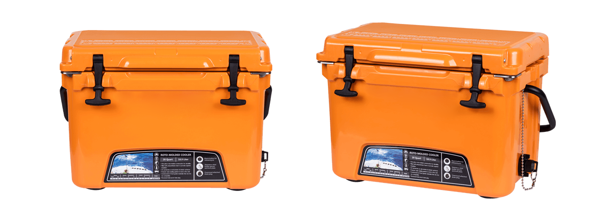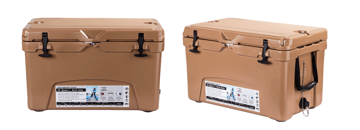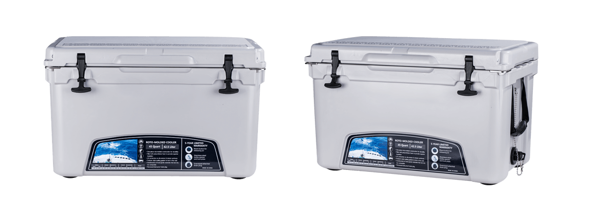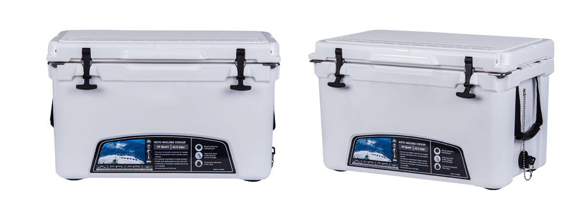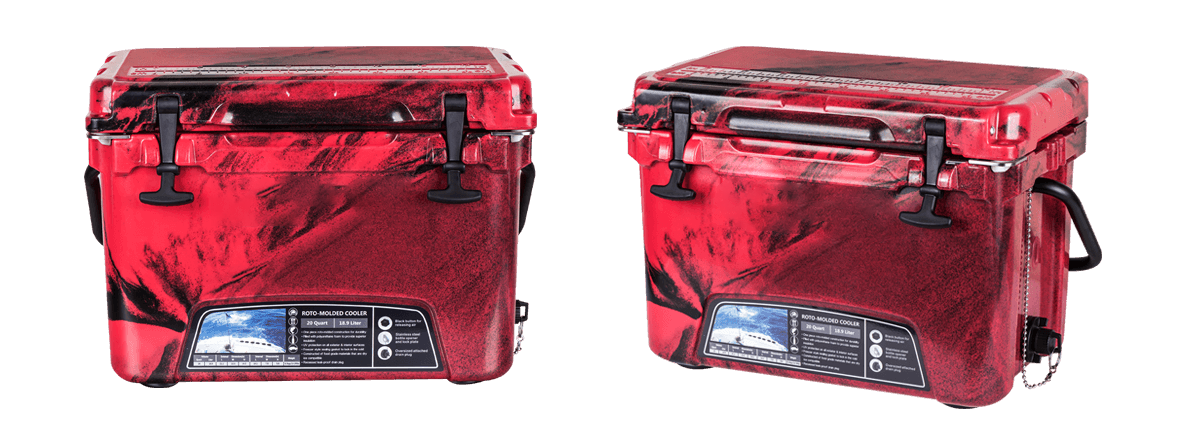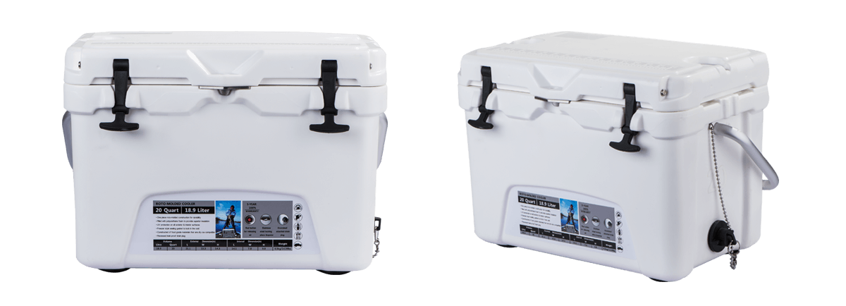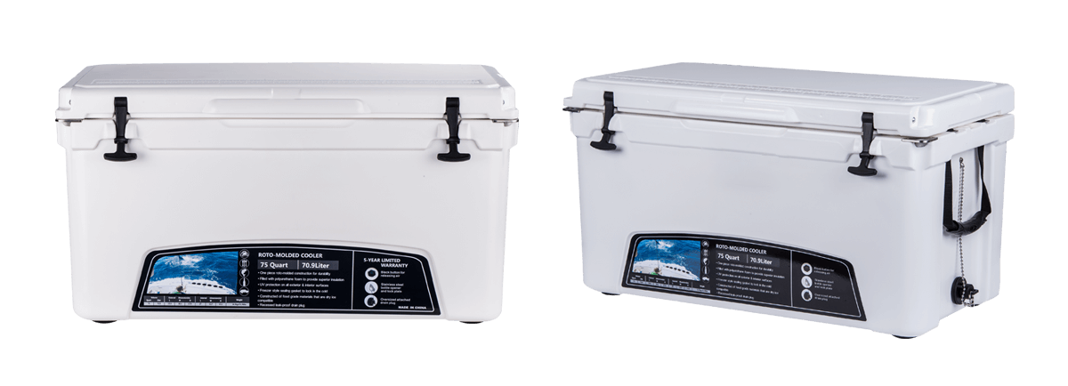 This type includes 10/20/45/60/75qt, 70/110qt with wheels. It features one more bottle opener than the 2015 model. Cancel the cup holder position on the top of the box cover, and the customized logo will be moved to the middle of the box cover, making the whole more rounded.