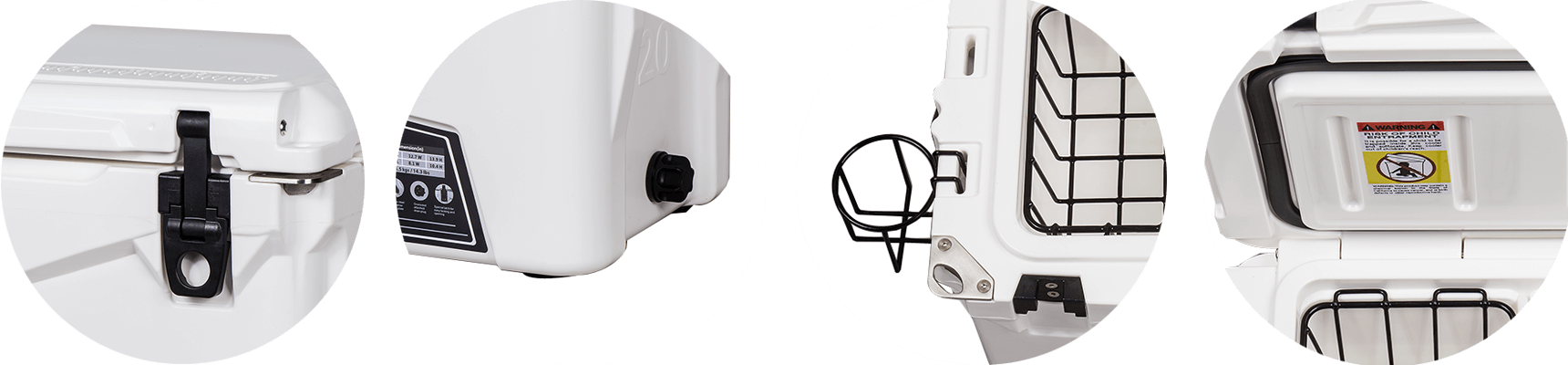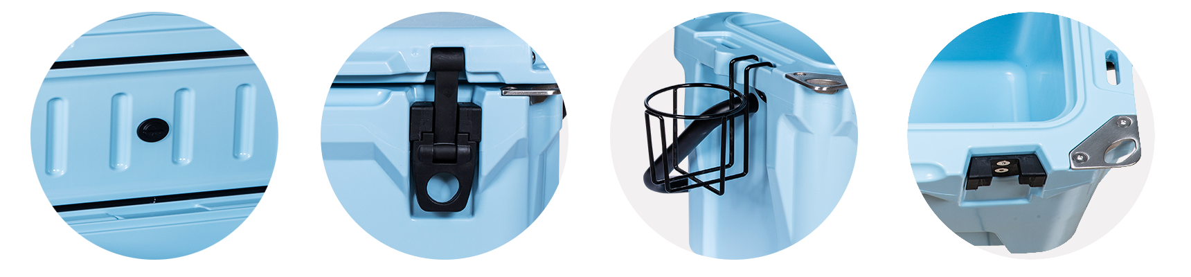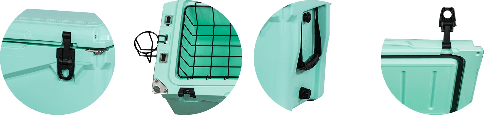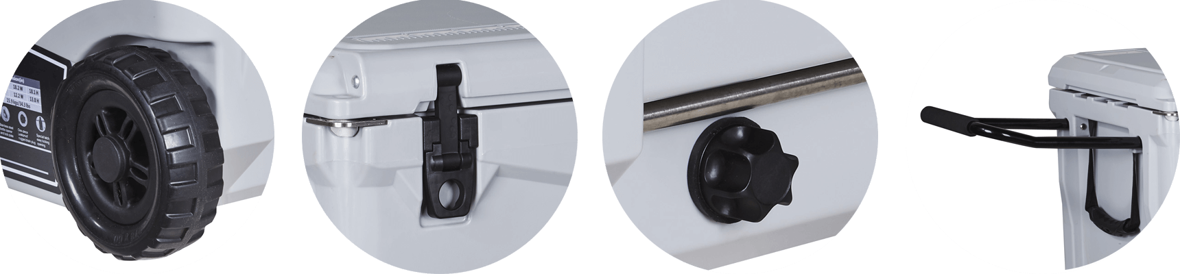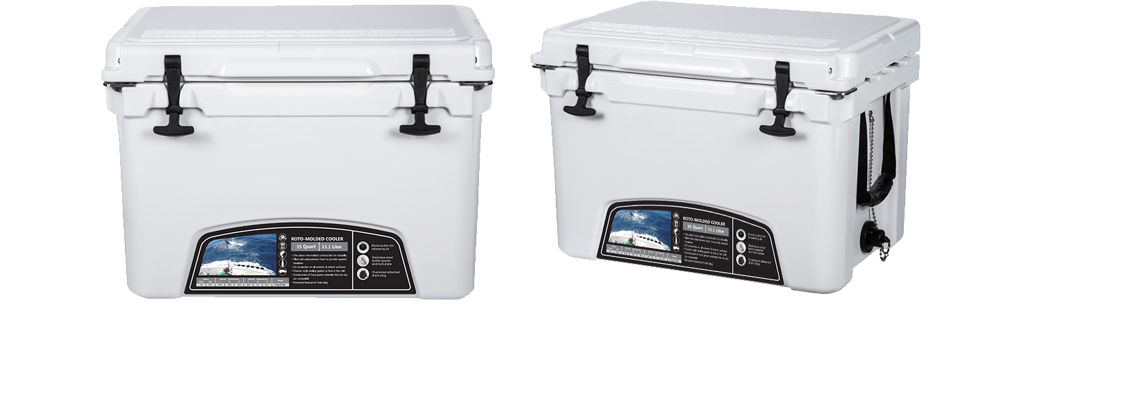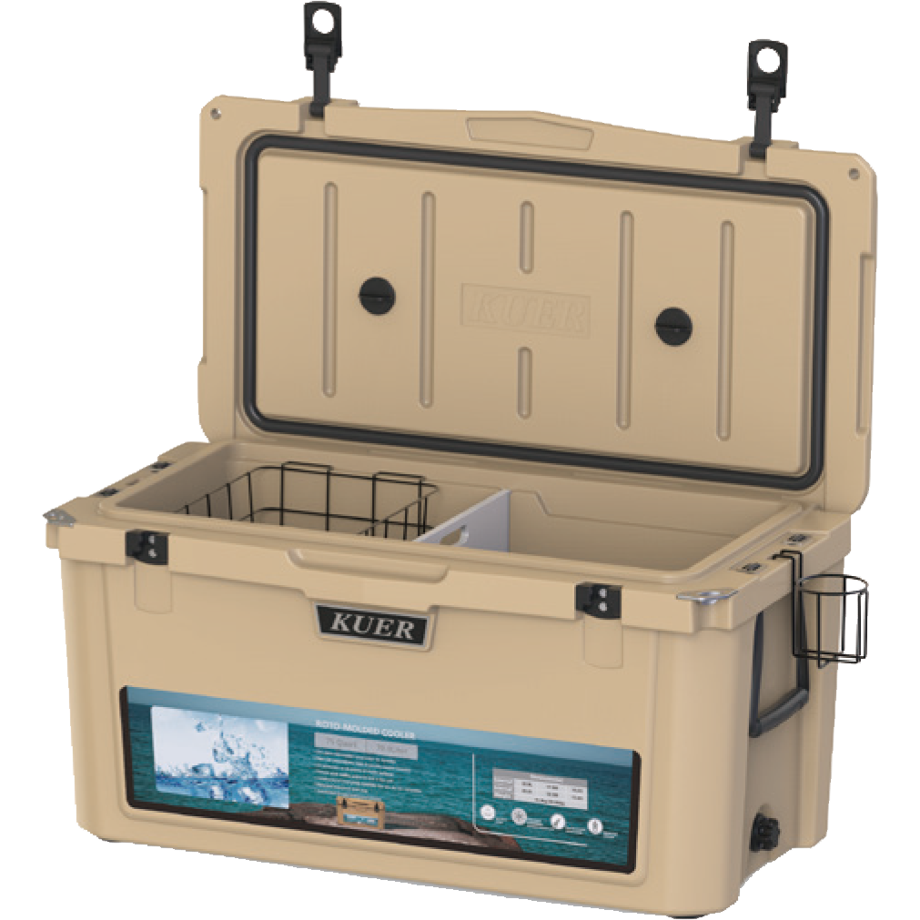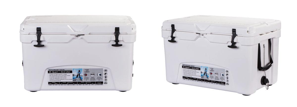 This type includes 10/20/45/60/75qt, 70/110qt with wheels. It features one more bottle opener than the 2015 model. Cancel the cup holder position on the top of the box cover, and the customized logo will be moved to the middle of the box cover, making the whole more rounded.