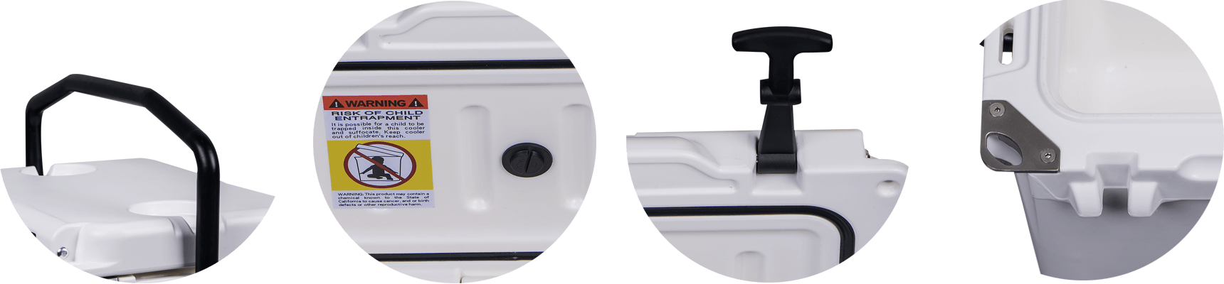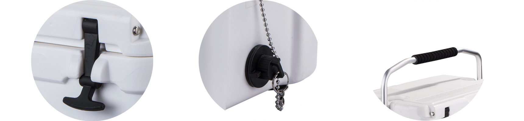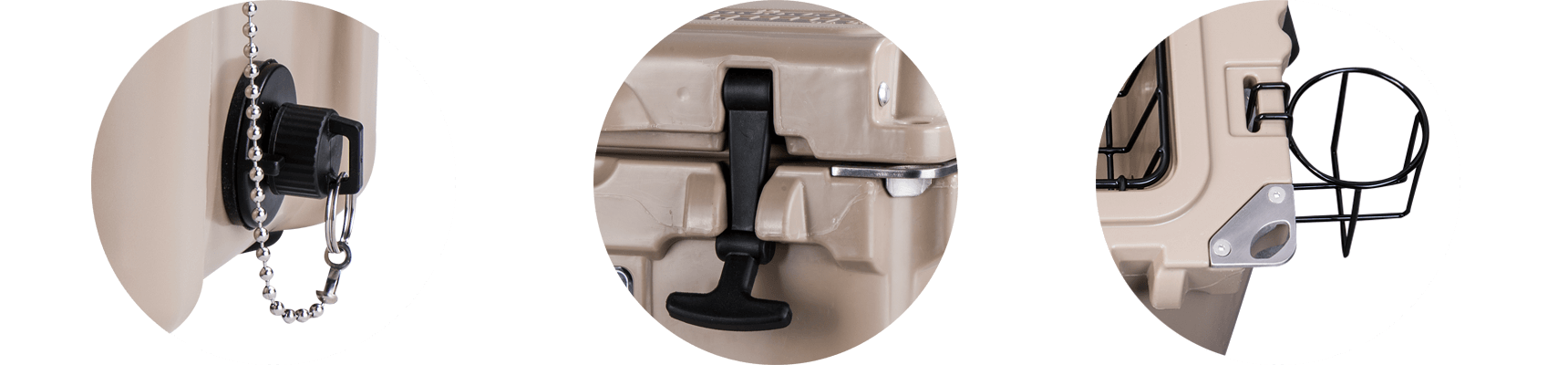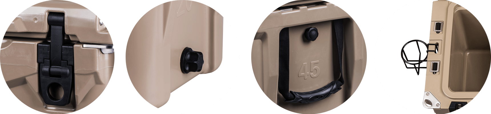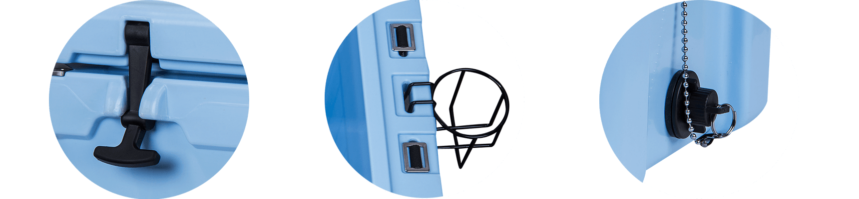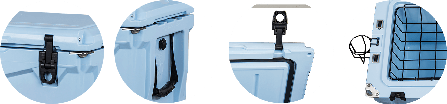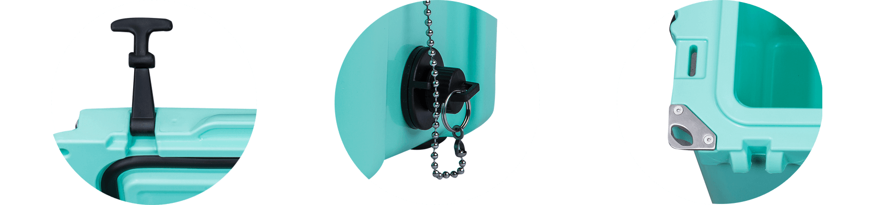 This type includes 10/20/45/60/75qt, 70/110qt with wheels. It features one more bottle opener than the 2015 model. Cancel the cup holder position on the top of the box cover, and the customized logo will be moved to the middle of the box cover, making the whole more rounded.
