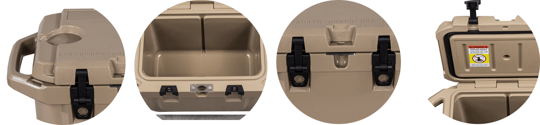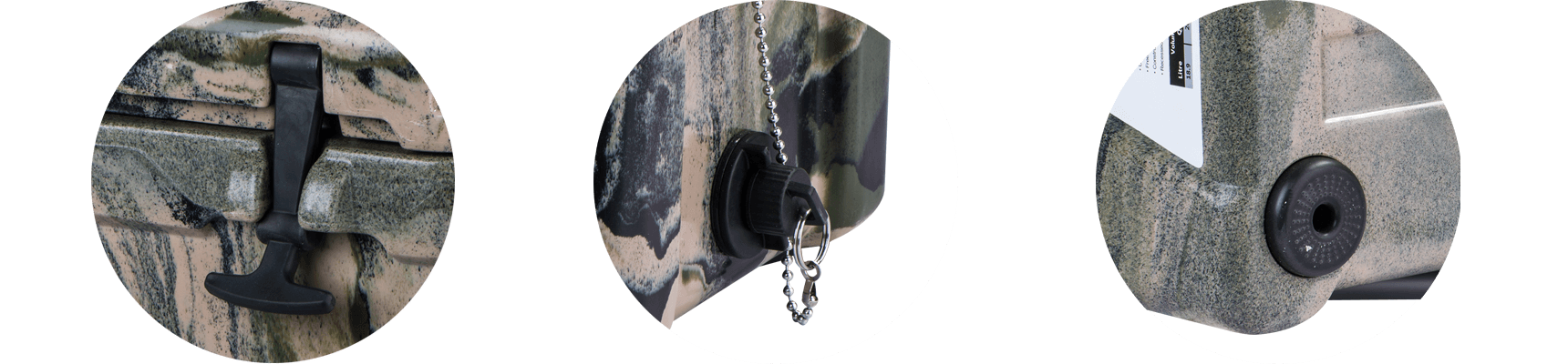The useful measurement scale on the top of the lid is a handy feature for fisherman. Recessed drain plug.