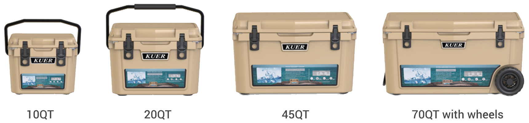 The 2016 model includes 10/20/35/45/75/110QT and 70/110QT with wheels. Compared with the 2015 model, there is an extra bottle opener. Remove the cup holder position at the top of the lid, and the custom logo will be moved to the middle of the lid, making the whole more rounded