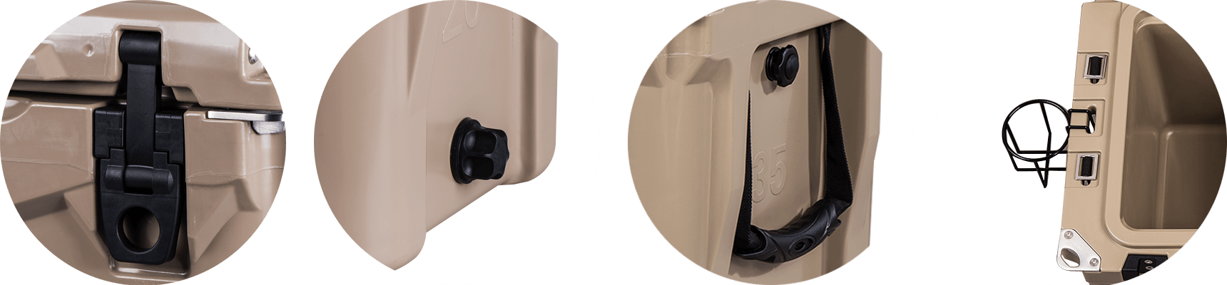 The 2016 model includes 10/20/35/45/75/110QT and 70/110QT with wheels. Compared with the 2015 model, there is an extra bottle opener. Remove the cup holder position at the top of the lid, and the custom logo will be moved to the middle of the lid, making the whole more rounded
