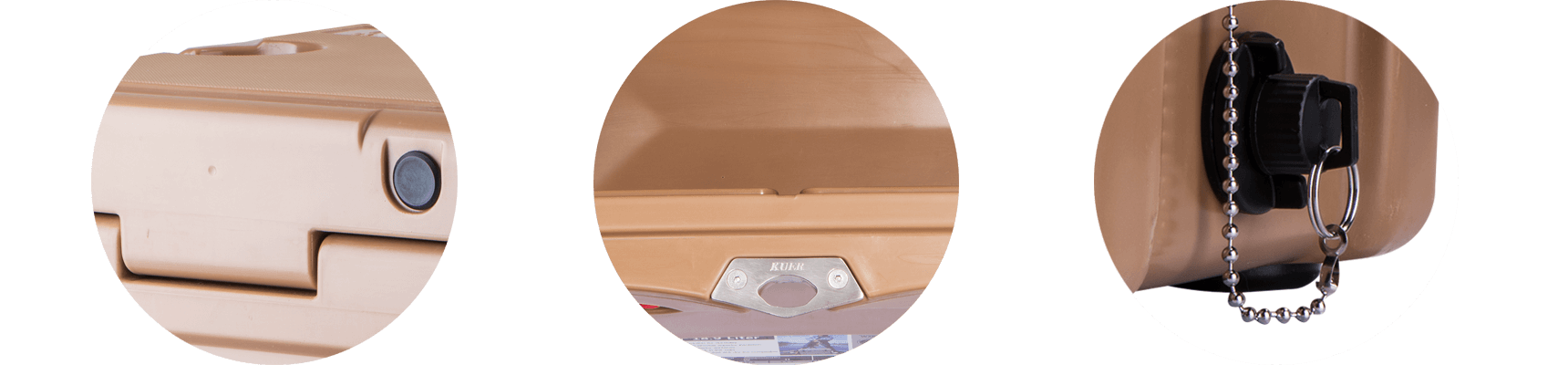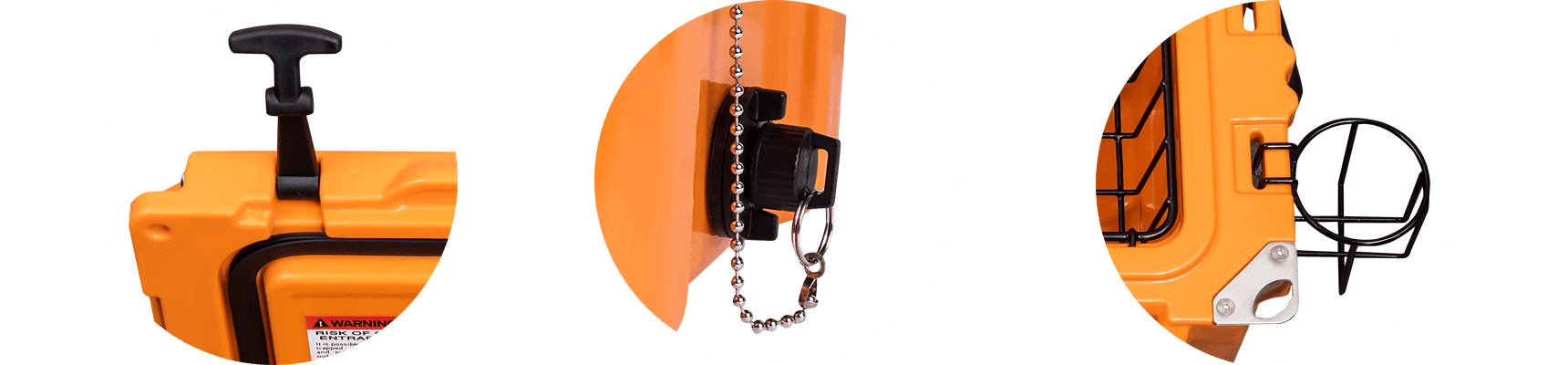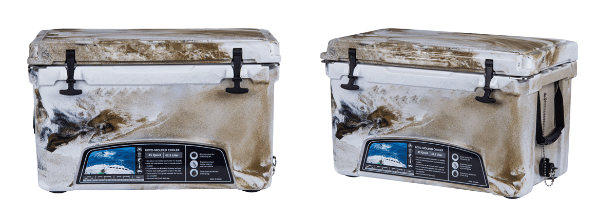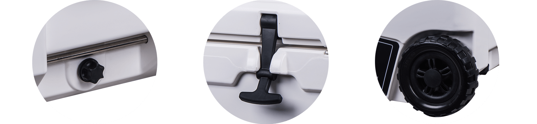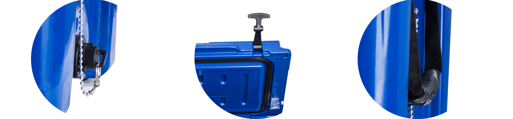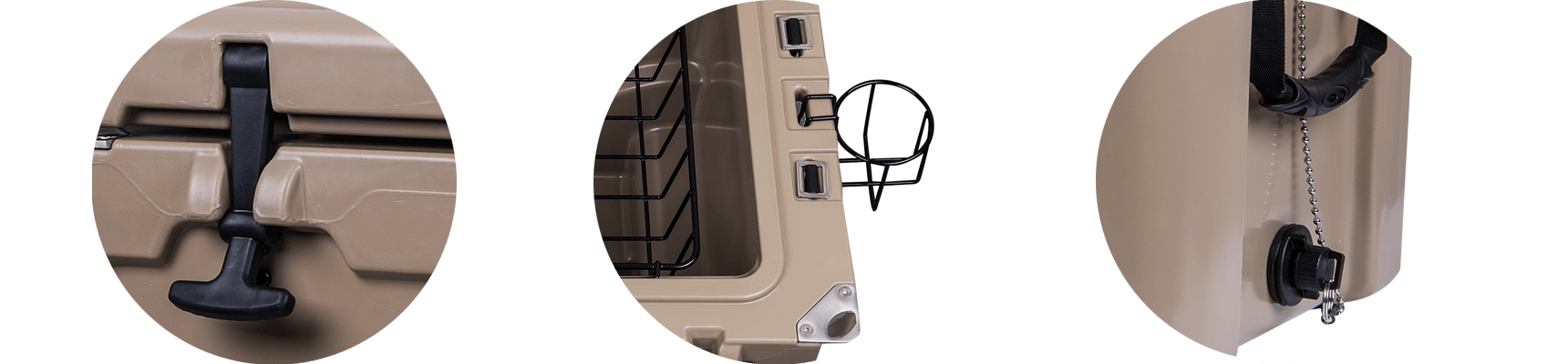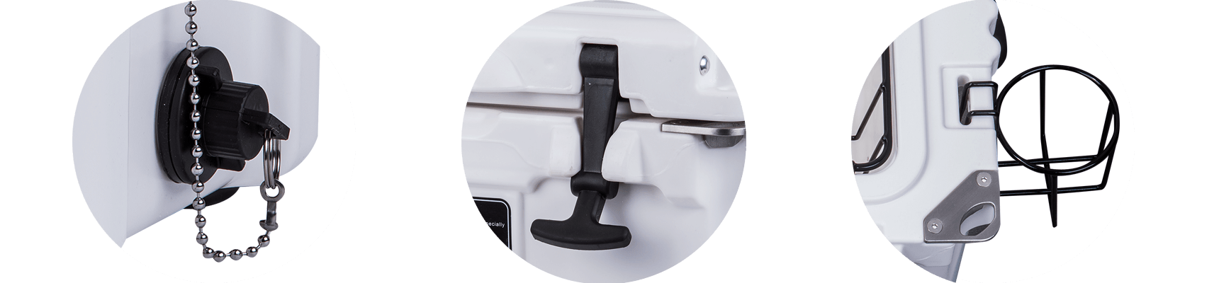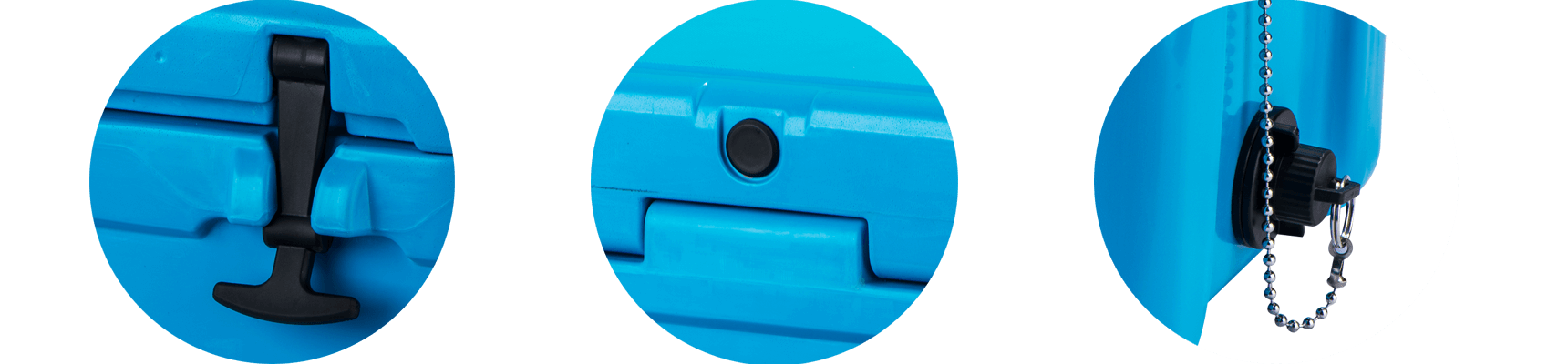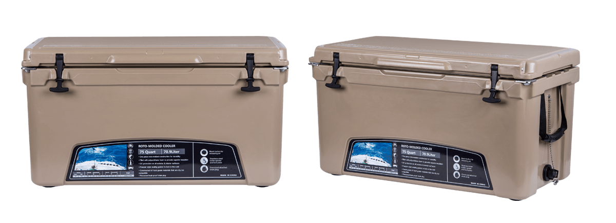 This type includes 10/20/45/60/75qt, 70/110qt with wheels. It features one more bottle opener than the 2015 model. Cancel the cup holder position on the top of the box cover, and the customized logo will be moved to the middle of the box cover, making the whole more rounded.
